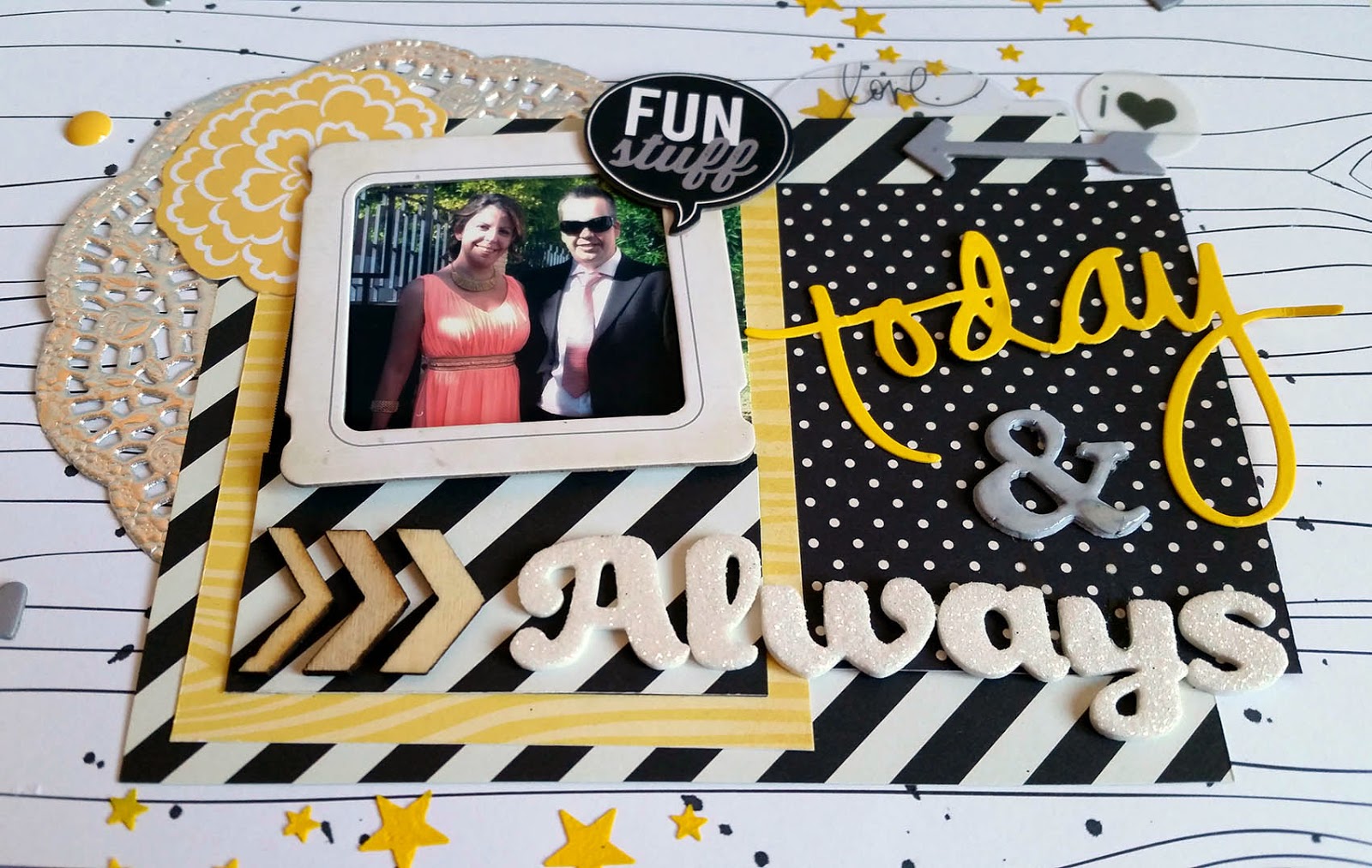 EliminarLidia, qué preciosidad!!! La combinación blanco-negro-amarillo es todo un acierto y has seleccionado los papeles estampados y adornos con mucha maestría. Me he hecho seguidora suya... no puedo perderme más joyas como esta! Besos